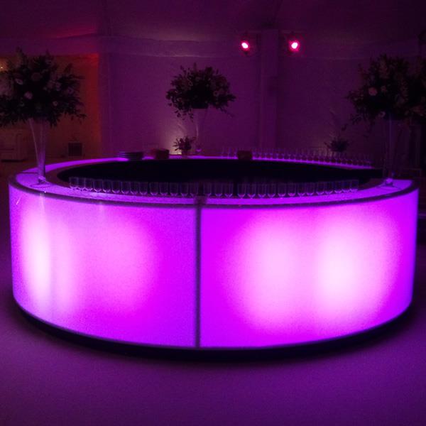 You can use it as one 4 meter round bar or can use it in four separate smaller bars. You also can use two pieces to create a half round bar. All the four separate pieces and door section are on castors for quick set up and dismantle.